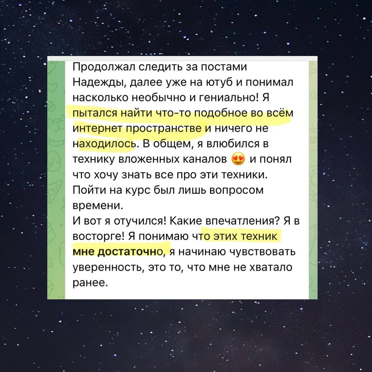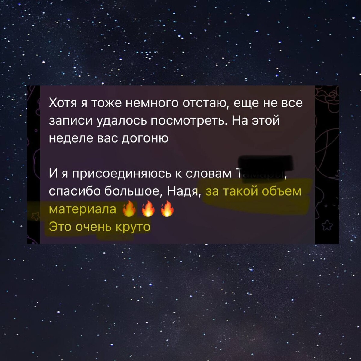 Здесь начинается погружение. Раз в два дня вы получаете не «урок», а ключевой элемент мозаики метода. Это не поток информации — это построение собственной библиотеки паттернов и принципов, к которой у вас будет доступ навсегда. Чат-сообщество — не для болтовни, а для расшифровки сложных моментов вместе с единомышленниками.