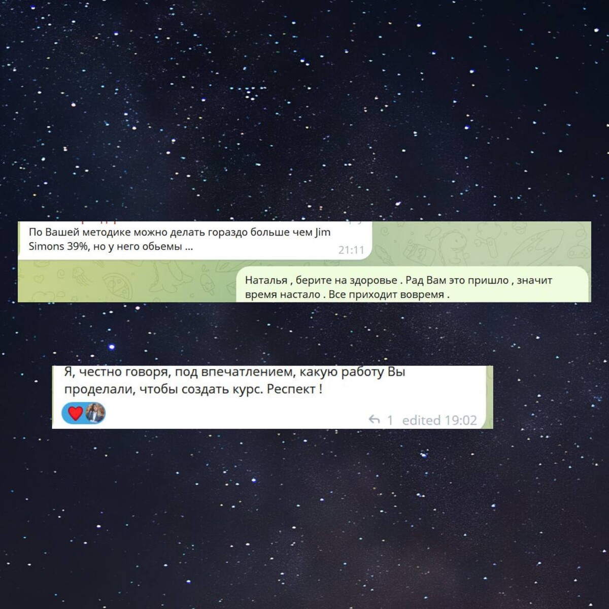 Полное погружение. Задача — не просто научить методу, а перепрошить мышление, чтобы ученик сам мог адаптировать метод к любым рыночным условиям. Вы будете понимать его границы, адаптировать и прогнозировать его эффективность в долгосрочной перспективе